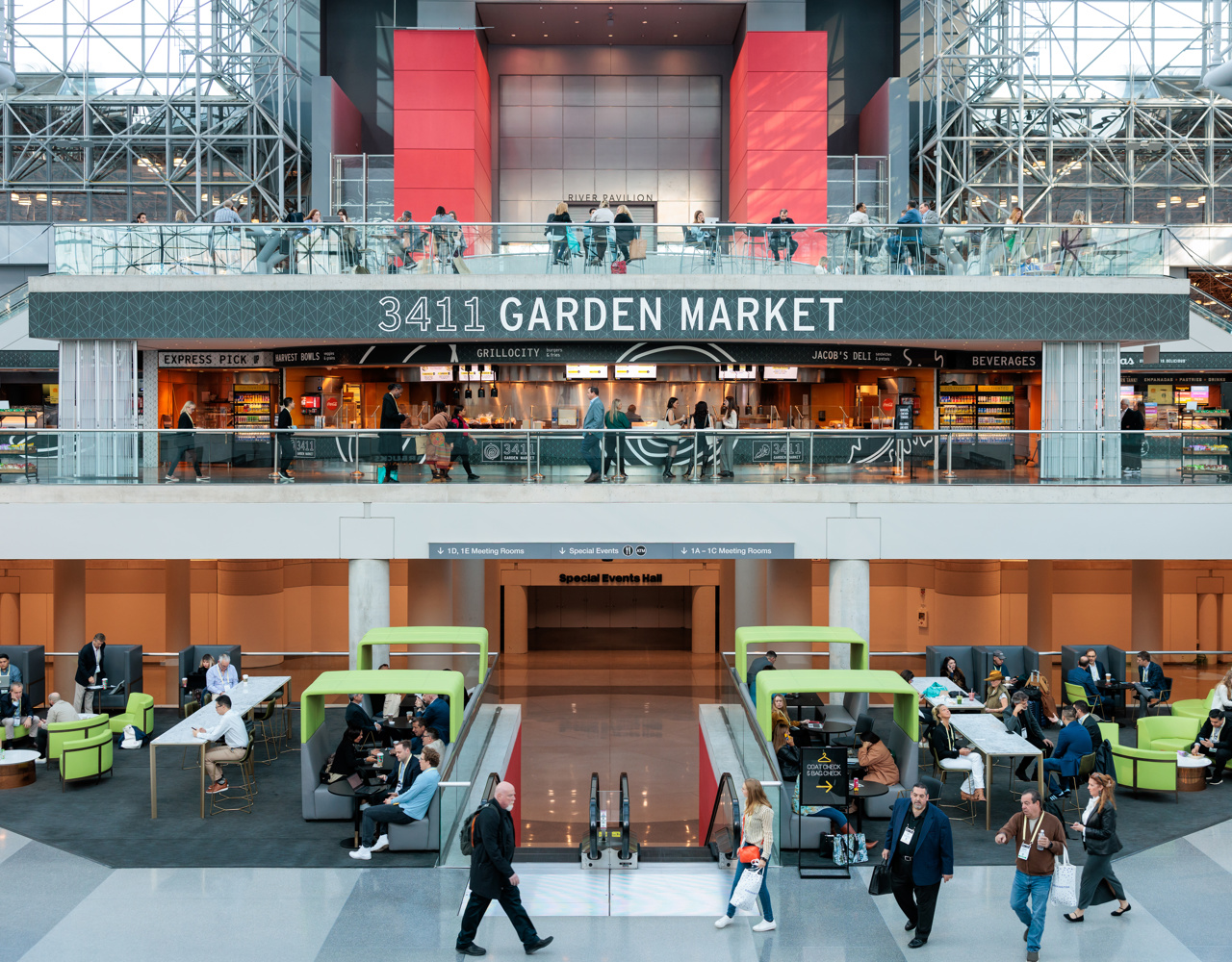 Javits Center proudly offers a wide range of services and amenities for your event. Feed your guests at the state-of-the-art food court called 3411 Marketplace on Level 3, a full-service food court on Level 1, or with our in-house caterer Cultivated for either grab-and-go or more elevated options featuring produce from our rooftop farm. Enjoy conveniently located solutions to small problems including printing at FedEx Office, grabbing supplies at Hudson News and getting your caffeine fix at Starbucks. Loading your event in and out is a breeze with Javits Center’s 4-level truck marshaling building, complete with 50 covered loading docks and three drive-in ramps for each floor. Javits Center is ready to make your event a success!